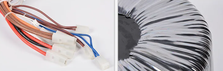 Kedua, transformator toroidal frekuensi rendah menunjukkan fluktuasi tegangan keluaran yang relatif kecil akibat perubahan beban. Belitannya yang terdistribusi secara merata dan impedansi rendah memastikan bahwa output tetap relatif stabil selama perubahan beban mendadak atau variasi arus transien, sehingga membantu meningkatkan kemampuan respons dinamis dari catu daya. Selain itu, transformator toroidal frekuensi rendah menunjukkan getaran mekanis dan kebisingan yang lebih rendah. Trafo tradisional mungkin mengalami sedikit getaran karena magnetostriksi selama pengoperasian, sedangkan struktur toroidal secara efektif mengurangi fenomena ini. Hal ini tidak hanya meningkatkan pengalaman pengguna tetapi juga secara tidak langsung mencerminkan kondisi pengoperasian yang lebih stabil.